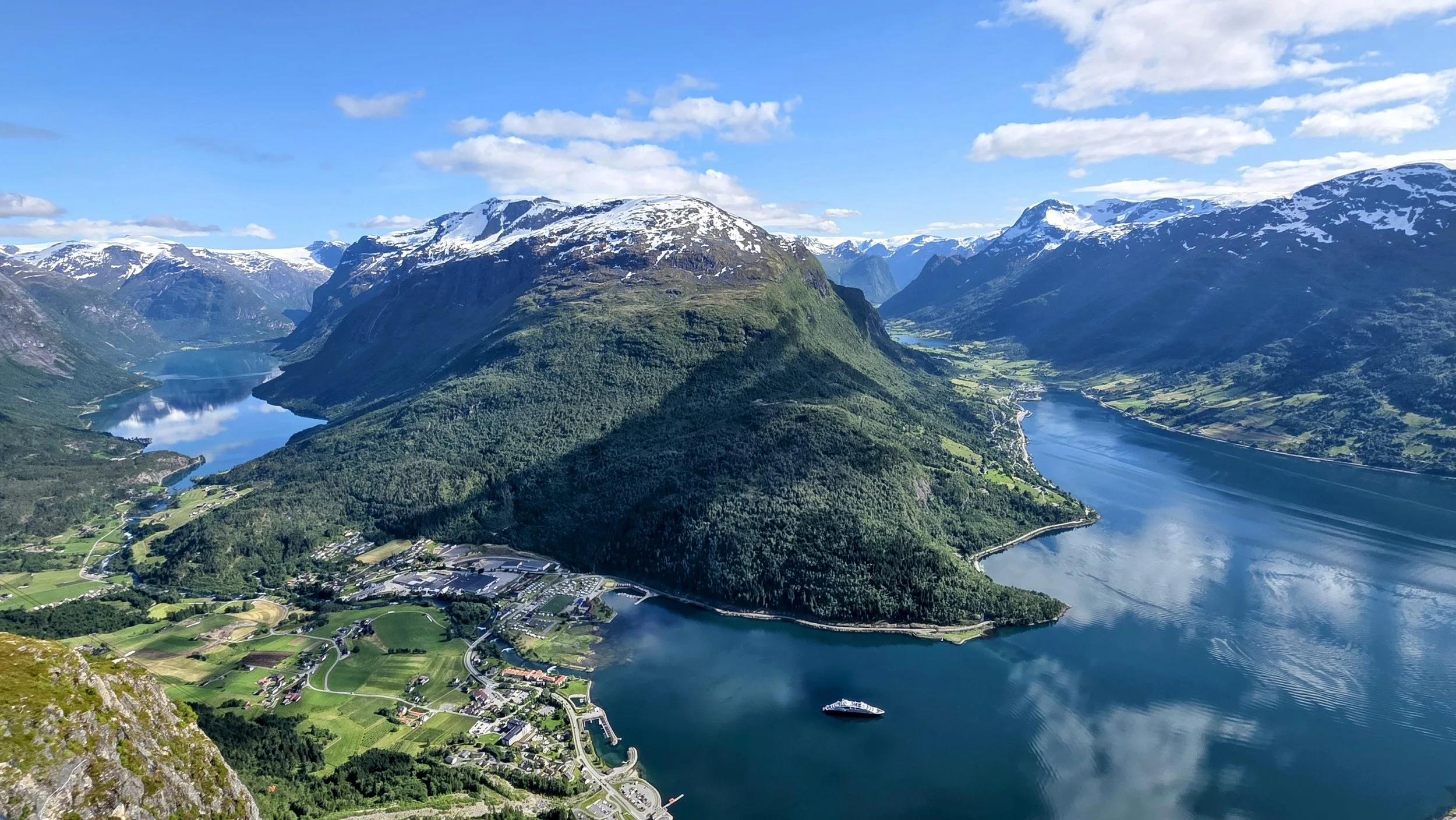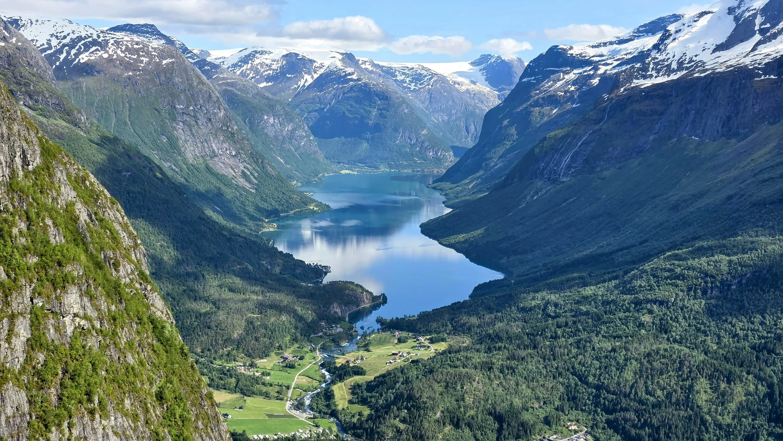 From the lookout, you’ll continue north through another unworldly, snowy wonderland with families of sheep hugging the roadsides— keep in mind, it’s the middle of the summer. You will eventually take the 15 north towards Geiranger, an extremely popular town with an iconic fjord nearby. There are several popular outdoorsy activities in Geiranger ranging from the Ørnevegen Viewpoint, the Flydalsjuvet Rock and kayaking on the fjord. However, we chose to skip Geiranger because a few of the hikes looked very similar to Trolltunga and we wanted to spend more time in Loen to do the Via Ferrata. I also read that the town itself isn’t anything special and that it can often get overrun by cruise ships (my worst nightmare). Up next is the town of Loen and it would be out-of-the-way to come here if you’re not doing the Via Ferrata— and in that case, it would definitely be worth staying in Geiranger since you need to return this way anyway after visiting Loen. Hope that makes sense!