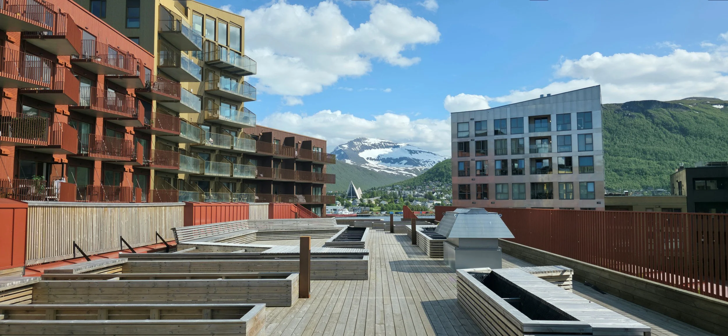 There are a lot of great photo opportunities when driving around Sommaroy Island. However, I recommend stopping at the Arctic Hotel and walking the property where you can find these last 3 photo spots. Not only that, but the hotel also has super cool interior design and a tasty restaurant. You will see the photo location of the red buildings by looking across the water from hotel’s rear balcony area.