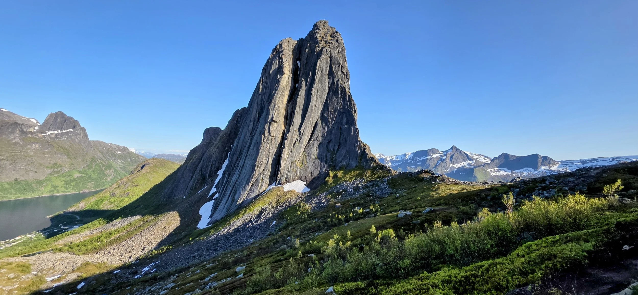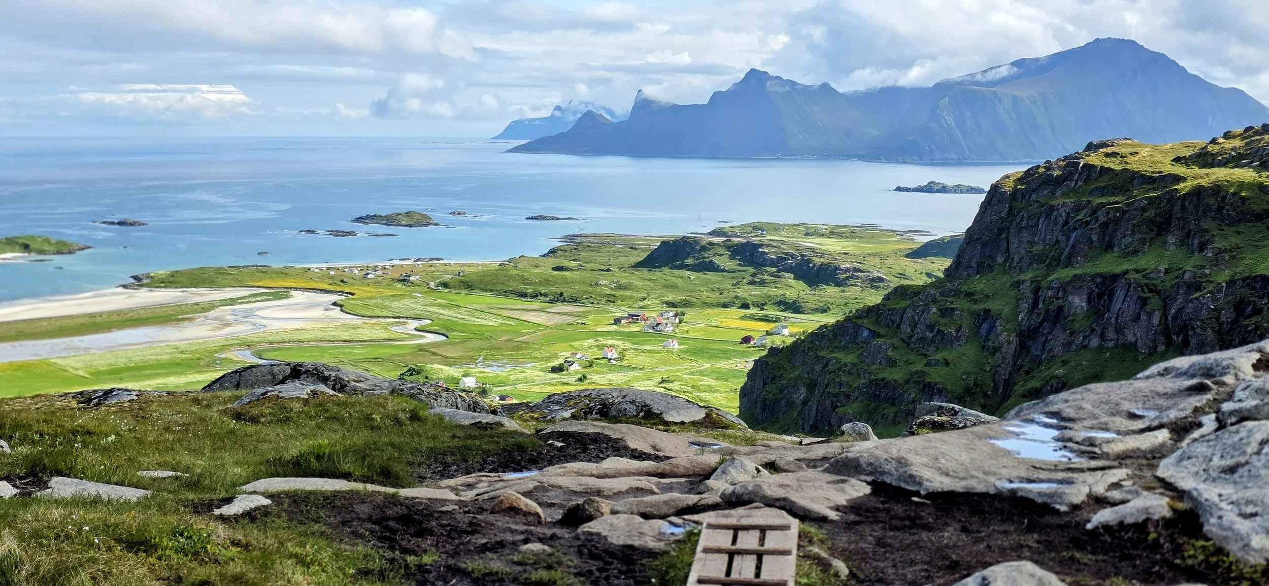 For your second day, I would recommend rising super early and starting the Ryten Hike at 6am. This hike is spectacular, but much less touristy because most hikers don’t have transportation or the means to get there. Even though it’s not as steep as Reinebringen, it’s significantly longer, mostly uphill and requires good strength and endurance. The drive from Reine is ~30 minutes and the hike is ~4 hours roundtrip (6 miles). However, you can make this hike into an all-day excursion by extending it further (more to come). The parking situation is a little odd and you’ll fine multiple methods online, but we drove to Yttersand which is the "direct hiking route” and used the first parking lot. To get here, cross the Fredvang bridges, follow the signs to Yttresand, and stay straight when the road turns off to Fredvang. The road curves to the left and then you will see a large, grassy parking lot on the left hand side of the road. This is simply part of someone’s yard that was turned into a small parking lot. It costs NOK 100 ($10) cash to park here. If you are wondering about the climate, you’d be comfortable in a hoodie, light rain jacket, hiking pants and boots