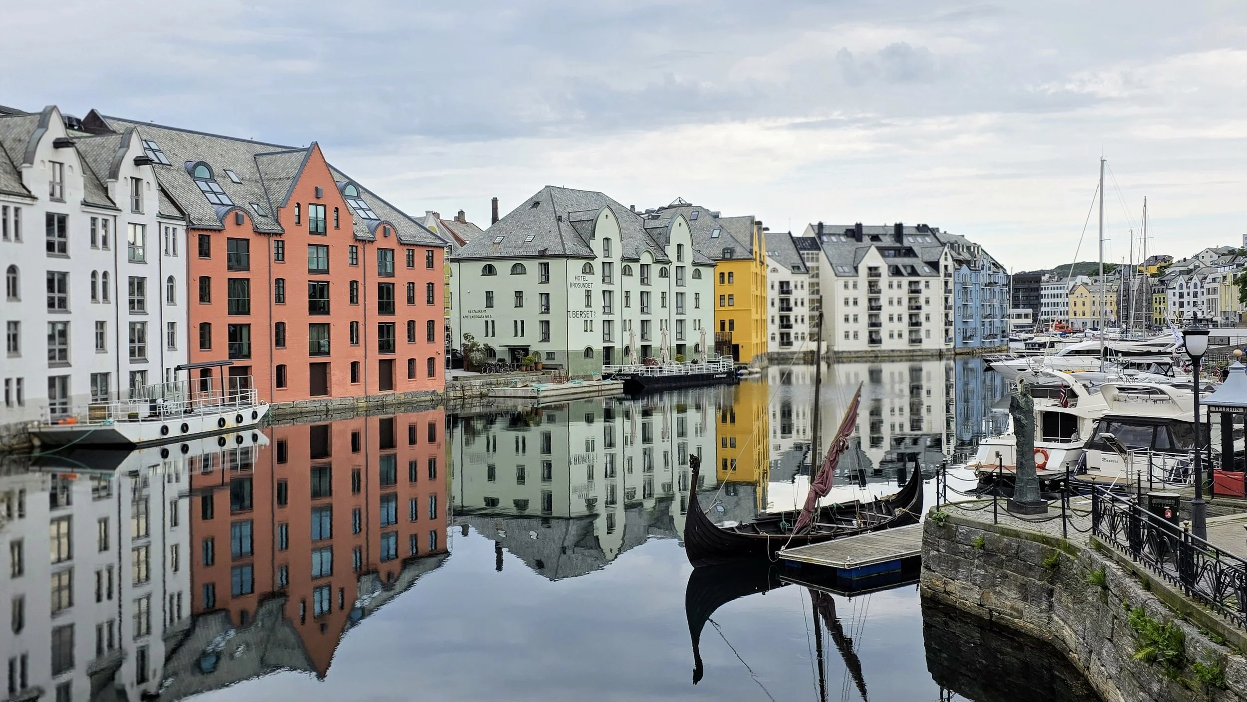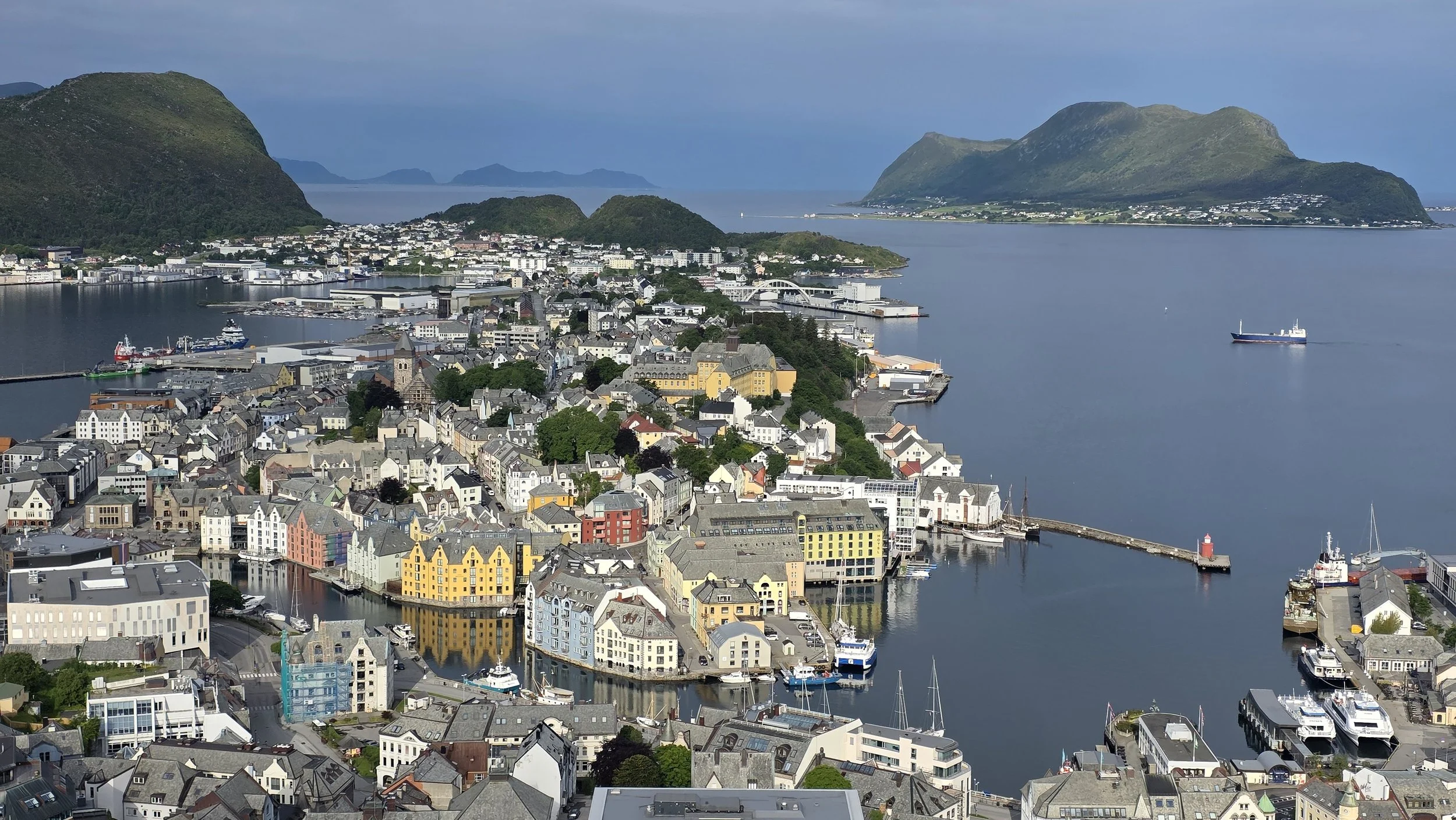 We stayed at the Hotel Brosundet for 1 night which is a higher-end, modern hotel situated on the water in the heart of the city and liked it a lot. Transparently, there isn’t much to do in Alesund, but walk through the city streets. This photo was taken from Tafjord Kraft Varmebenker— look it up on a map and it’s easy to find. Alesund busy during the daytime when the cruise ships are nearby, however becomes very quiet at night.