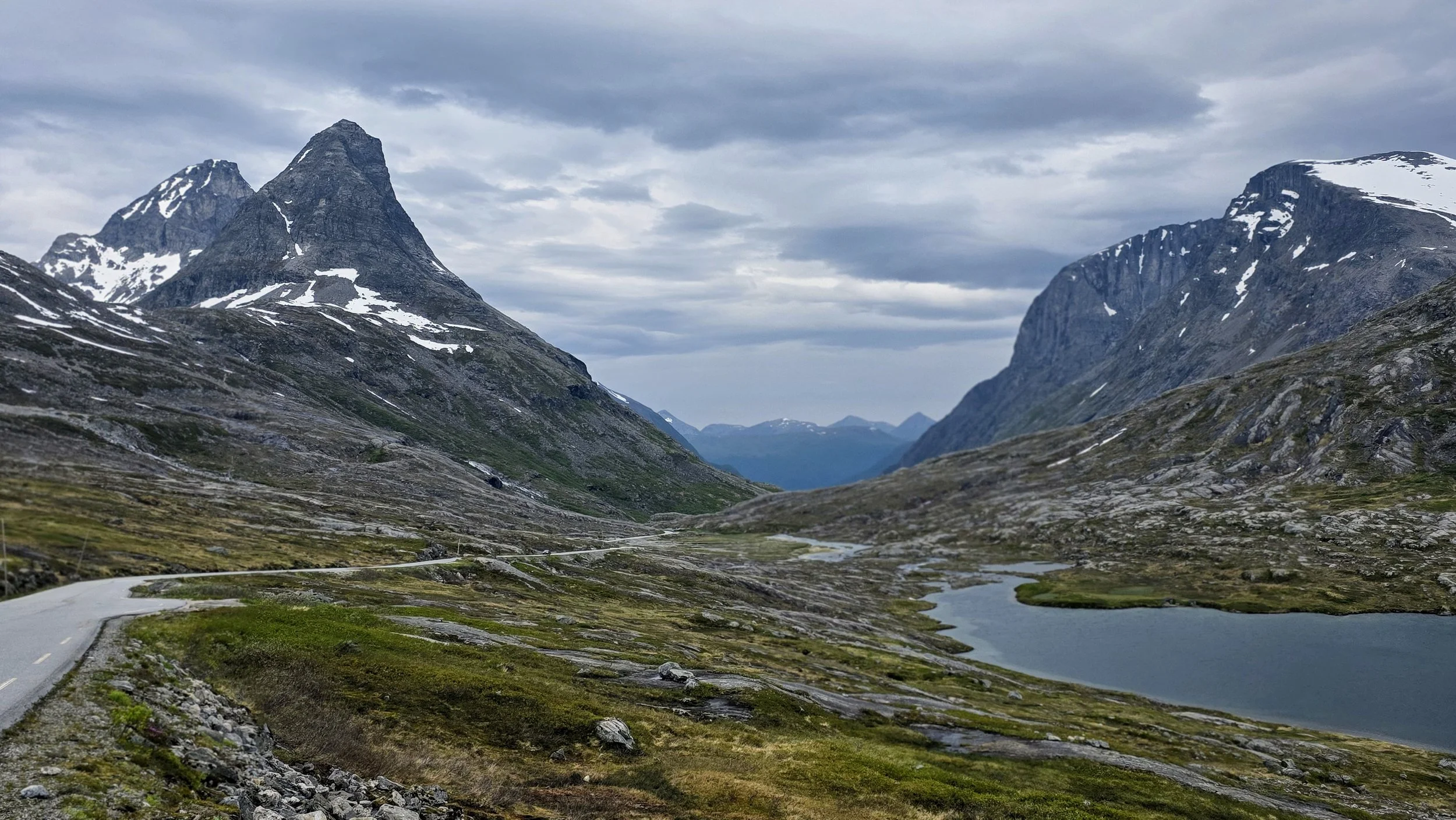 Trollstigen Road itself, is located in the Reinheimen National Park which is visible in the picture above. This photo was taken from the 63, ~5 minutes before reaching the visitor center, which then leads to the hairpin turns. Valldal is the nearest southern village where many people stay for the night before entering the park and continuing the drive. If you have extra time available, driving to the Rauma Valley (route 136) is also supposed to be a another extremely scenic road that’s located nearby, but we never made it there.
